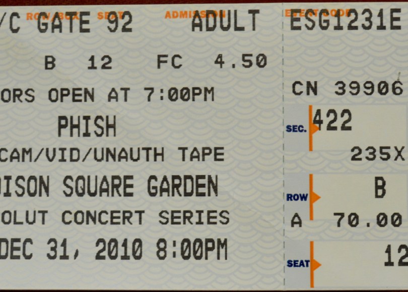 On December 31st, 2010 I attended my first-ever Phish-hosted New Year’s Eve concert, which took place at Madison Square Garden in New York City. M’lady and I had driven straight from my family’s Christmas celebrations in Moncton, New Brunswick to Worcester, Massachusetts (a town name/condiment that I just can not pronounce properly. It’s frustrating but at least people tend to get a kick out of hearing me try) for a night of Phish, then it was on to the Big Apple for a birthday show (of mine) featuring Prince, followed by another night of Phish, this concert, and still another Phish concert on the first of January.