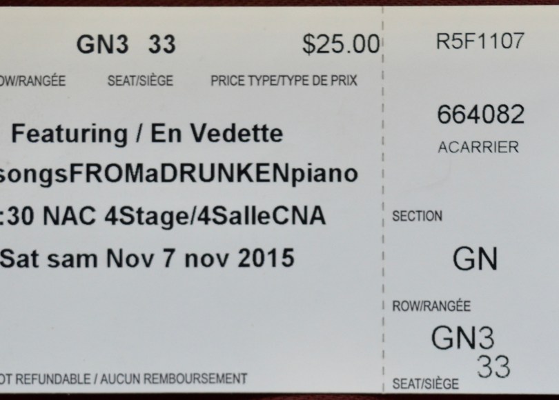 On November 7th, 2015 I attended what was probably my final pre-renovation show at the National Arts Centre’s 4th Stage. While the 4th Stage had been the product of an admirable renovation in the first place – borne out of a previously unused room that was primely located along the Elgin Street side of the building – it was a venue sorely in need of some sprucing up, and fortunately the NAC did exactly that as part of their extensive renovations of 2016-18.