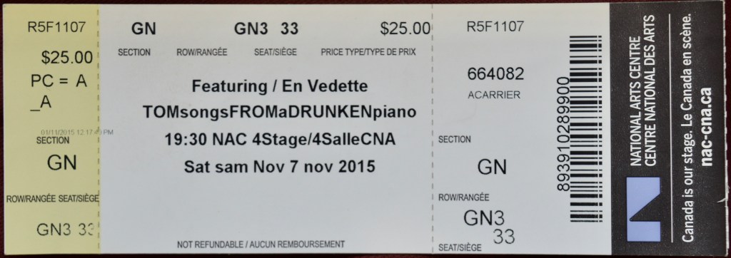I was there to see a Tom Waits tribute called Tom Songs From A Drunken Piano, featuring some of the crème de la crème of the Ottawa music scene. I was there because a) I like tribute concerts vastly more than I like tribute acts, b) several friends of mine were playing the show and I always enjoy going out to see my friends play music, and most of all c) I love, love, love Tom Waits.