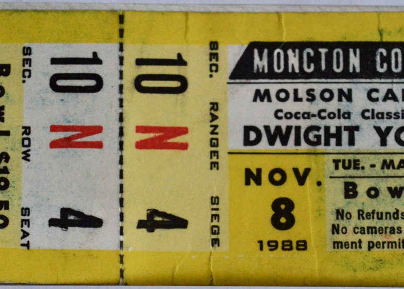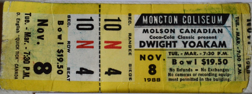 I was at the tail end of an on-and-off relationship with my Grade 11 girlfriend when she asked if I would please, please, please go with her to see Dwight Yoakam at the Moncton Coliseum on November 8th, 1988 and I very reluctantly said yes.