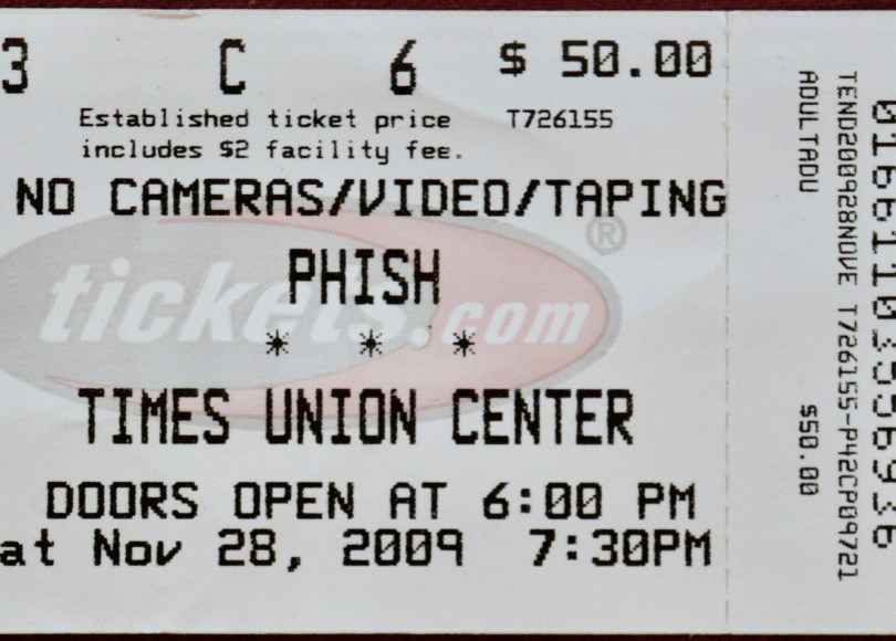 On November 28th, 2009 I attended the second of a Phish two-nighter in Albany, New York, something I was really starting to get in the serious habit of doing. Actually, checking my stats (yes, there are Phish stats*, and yes, being a Phish fan is much akin to being a sports fan), I see that this was Phish concert #37 for me, and if that shocks you then I think you’d better sit down.