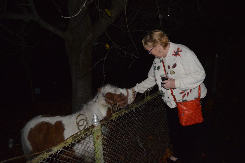 We stopped along the way so mom could pet a pony. Or perhaps it was a mule. I don’t know, it was dark out and I was keeping a look out for bats and black cats.