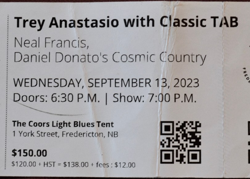 I certainly know who Trey Anastasio is though, and I suspect that you do too. I’ve been to a heck of a lot of Phish concerts and I had pretty good-slash-great seats at plenty of them, but when he emerged onto the small stage in the Coors Light Blues Tent (I kid you not) I had to marvel…It had been a loooong time since I had been this close to Trey at a show, if ever. By this point I had backed a couple of bodies off of the rail but I was still no more than a dozen feet from one of my favourite living rock guitar players. And my hands full of beerses no less!