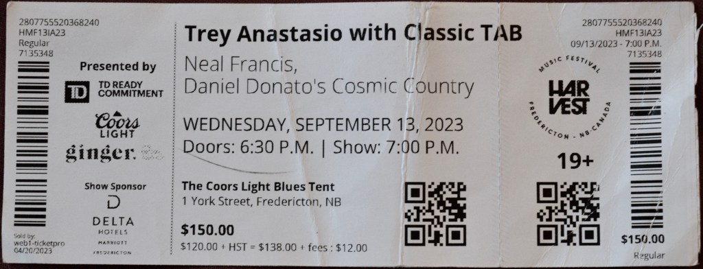 By the time we got back to the hotel all was forgiven. Dave even bought me lunch (supper? Sunch) at a restaurant across the street and after a few beers back at the room we accidentally split an uber down to the fest with a couple from Moncton and their two teenagers. (They were a family of massive Phish heads; they had even named their youngest son Trey and while he was the biggest fan of them all, he wasn’t there. The Harvest Festival tent is strictly 19+ and young Trey was strictly only sixteen years old.)
