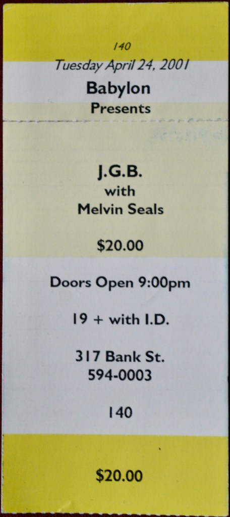 This show at Babylon wasn’t billed as “Melvin Seals” or even “Melvin Seals from JGB”*, it was billed simply as “JGB”. To be specific, the poster featured “JGB” at the top in the largest font imaginable, beneath which was the tagline (I guess): “Keepin the Jerry Vibe Alive”, and all of it superimposed over a big picture of Jerry Garcia’s face. Lower on the poster it read (in even smaller font): “featuring melvin seals and NERO”**.