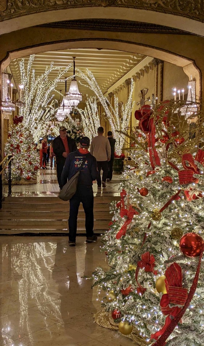 As if all that wasn’t Christmassy enough, there was a children’s choir assembled in the middle of the grand foyer singing carols and looking as cute as gingerbread cookies. The kids were encircled by their adoring parents and grandparents who all stood frozen in place, swooning and taking videos with their phones.