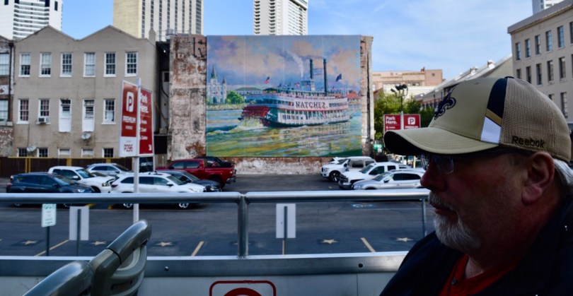 The bus started down Tulane and turned right onto Poydras. Had we turned left we would have gone right by Mother’s Restaurant, which had served us a couple of fine southern suppers. Then we passed the Superdome, where Kenny finally got to see his beloved Saints play, and they had won too! In some ways it was too bad that the highlight of the vacation had come so early in the trip, but on the other hand we didn’t have the looming excitement of the game distracting us the whole time either.