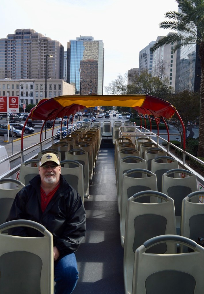 We were scheduled to land at 11am, so we would have a lot of time to kill before we checked in to the hotel. I intended to lobby for us to take the bus from the airport. A taxi would cost at least $60 – probably more – and when I checked online I discovered that the New Orleans Regional Transit Authority (RTA) now offered an airport express bus that ended its route just two blocks from our hotel.