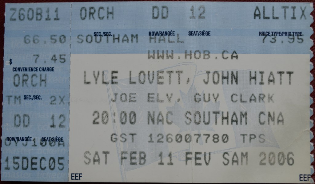 While the big room in the National Arts Centre is always a good, comfortable place to see a show I would generally not consider it an “intimate” venue, but when the concert is an acoustic song-circle and your seat is in the fourth row it almost feels like you’re just watching four people jam in someones living room. And though I wanted nothing more than one Lyle song after another I’ve got to admit the other guys weren’t hacks. John Hiatt, Joe Ely, and the late Guy Clark did an admirable job of holding their own as the songsters bounced their masterpieces off of one another, but my bias towards Lovett’s brilliance was easily confirmed. The curly-coifed cynic had the cozy crowd eating out of his strumming hand, making us laugh out loud with one line before the next lyric would silence us in poignant reverie.