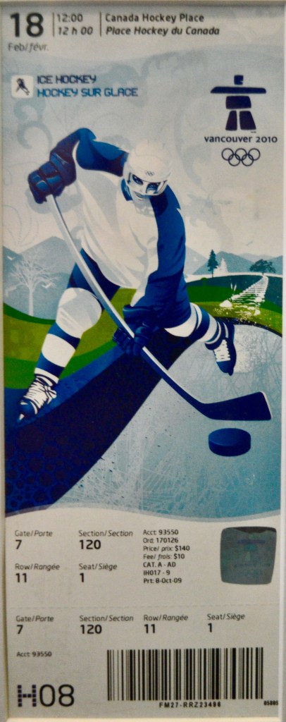 Way back around the middle of 2008 the ticket lottery for the Vancouver 2010 Olympic Games opened up (talk about planning ahead!). Knowing there was only the slimmest chances of getting anything – this was, after all, a world-wide event – I put in a ticket request and what do you know, my number came up and my entire order was filled.