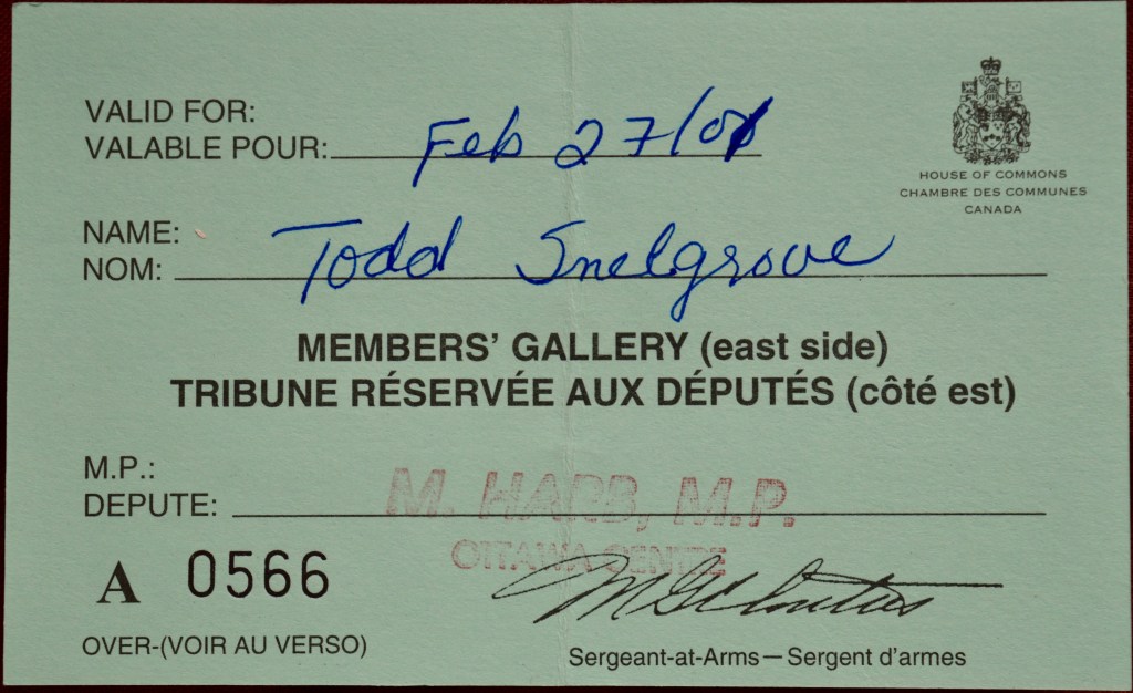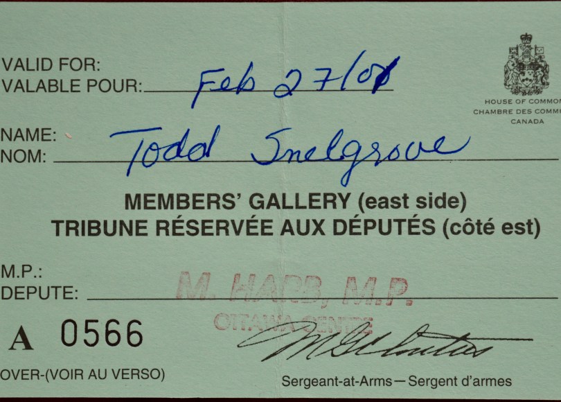On February 27th, 2001 I slogged through the snowy streets of my adopted hometown to the Parliament Buildings to sit in on Question Period. I am a huge proponent of treating your own city as a tourist might and I make a point of visiting as much as I can of all the splendour this city has to offer, but this time I actually had a real-live tourist with me, or at least an Ottawa expat who had long since moved out to Banff.