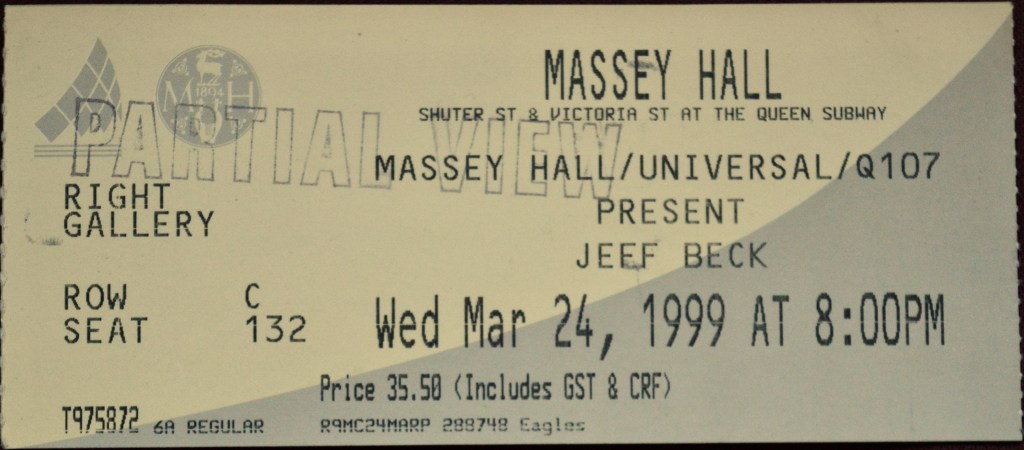 On March 24th, 1999 I went to see the legendary Jeff Beck at Toronto’s even more legendary Massey Hall.