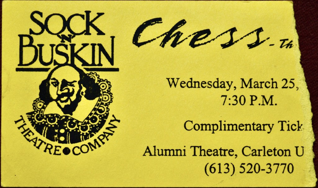 The show was called Chess. Now, I know you have never heard of it but boy, I bet you know the song that kicks off Act II: One Night in Bangkok. Yep, the tune came from a musical. Not only that, but a really boring musical about the Cold War and a chess match. Go ahead, google the lyrics. It’s an ’80’s rap song about a Cold War chess game. Astounding that it was a hit, really.