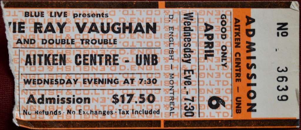 When I went to Moncton High School I used to spend my mornings standing across the street in front of what was at the time a motorcycle shop smoking cigarettes with my posse of fellow smokers. One chilly morning a girl I didn’t know very well mentioned that she was going with her dad and his friend to Fredericton to see a concert. It was a blues guy named Stevie Ray Vaughan and they had an extra ticket, would I want to go?