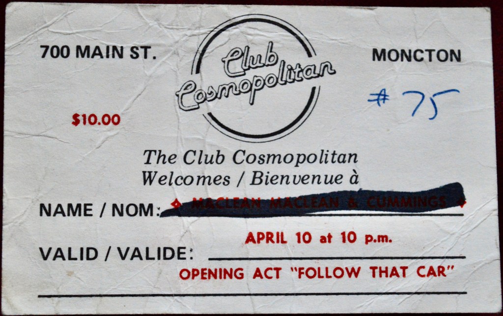 There’s a chance that April 10th, 1988 was the strangest night of live entertainment I’ve seen. Well, there was this one Look People concert at Zaphod’s that included a tray of jumbo shrimp and a couple of ice cream cones, and a very weird Yoko Ono set in Oslo that probably have this show beat but as far as odd pairings that really shouldn’t have happened (and ones that most don’t believe actually did happen, no matter how earnestly I tell them), Burton Cummings teaming up with potty-mouthed comedy duo MacLean & MacLean at a Moncton dance bar called Club Cosmopolitan probably takes the cake*.