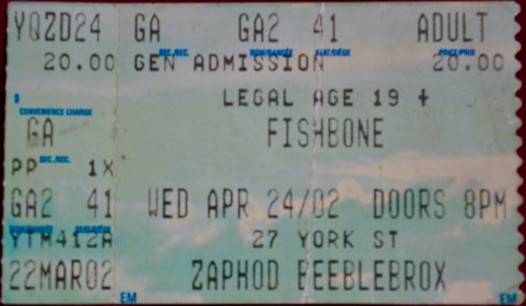 On April 24th, 2002 I saw Fishbone at the nightclub at the end of the universe, Ottawa’s own Zaphod Beeblebrox.