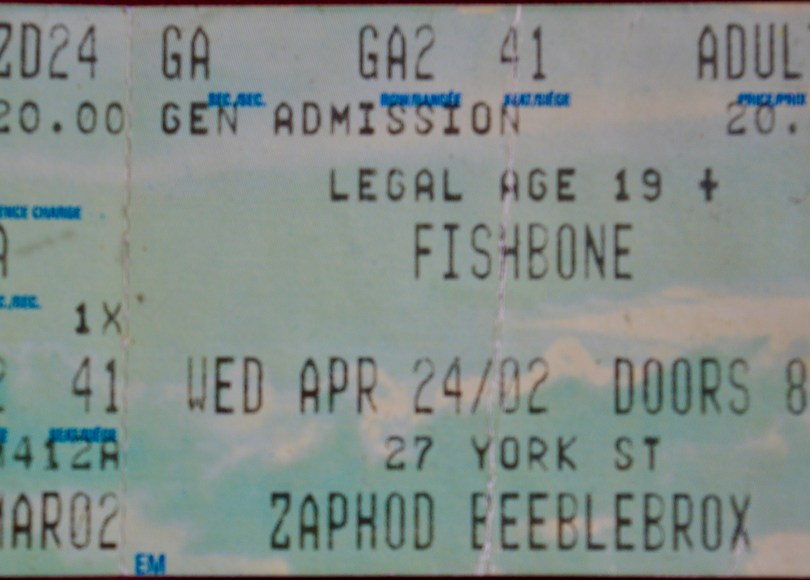 On April 24th, 2002 I saw Fishbone at the nightclub at the end of the universe, Ottawa’s own Zaphod Beeblebrox.