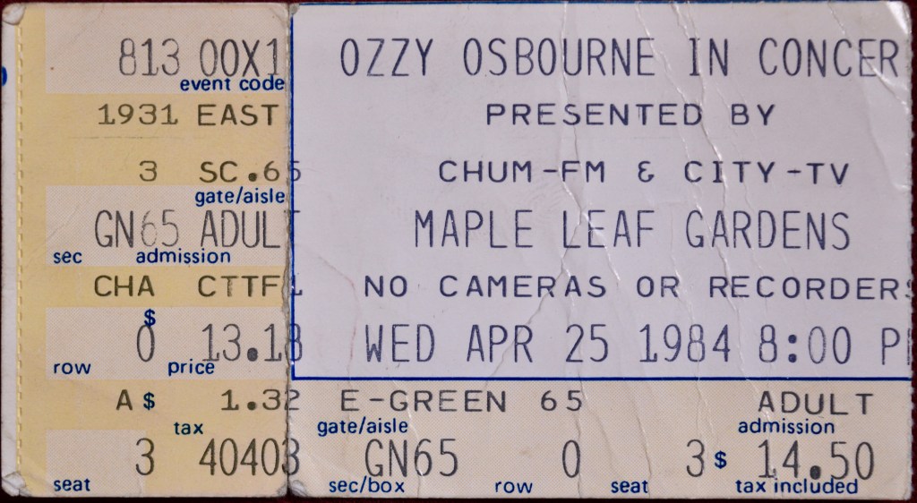 April 25th, 1984 was a lifetime ago. For a date that sits so far back in my past I remember this night remarkably well. I was sixteen and was renting a room in Toronto’s west end. I would have put in a mind-numbing day at the Thrush muffler factory (or just as likely called in sick) before making a snap decision to hop on the TTC and head downtown to see Ozzy Osbourne (1948-2025) live.