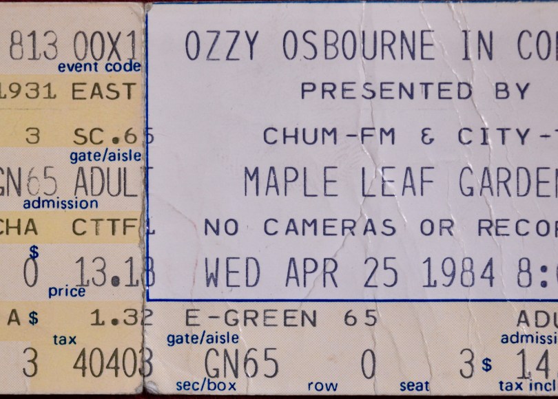 This was good news because I needed a ticket. It was close to showtime and I’ll never forget staring at a scalper who was standing in front of Maple Leaf Gardens yelling, “Ozzy tickets for a buck!” with a stack of tickets in his hand.
