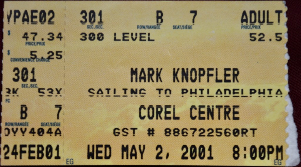 If I’m not mistaken, May 2nd, 2001 might very well have been the first time I saw one of my favourite guitar players live when Mark Knopfler played Ottawa’s WordPerfect Theatre, just outside of Ottawa.