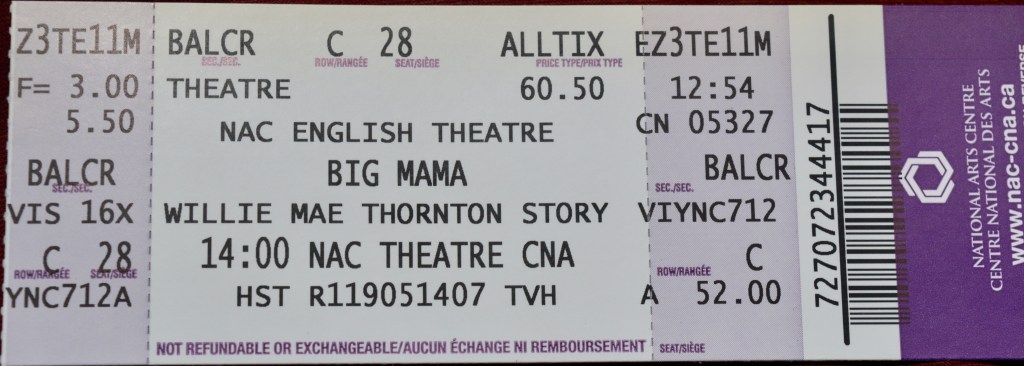 Fronting the band was blues singer Willie Mae Thornton (1926-1984), played by Canadian actress Jackie Richardson. Set in an anonymous bar sometime in the 1970’s, Thornton belted out tune after tune, using her between-song banter as stagecraft to spin her tragic drama and turn what could have been simply a club gig into a riveting and tragic dramatization.