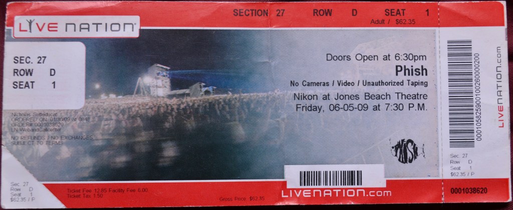 This was the last show of a three night run at Jones Beach, a venue infamous among Phish fans, and not just because the band makes a habit of playing here when they tour the east coast. The amphitheatre is right on the water, which I’m sure is much more picturesque from a boat than it is from the stands, but tonight the venue would feel like it was actually in the water.