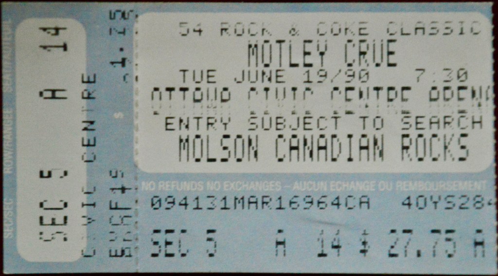 June 19th, 1990 was the second night of a rockin’ double-shot that my Moncton friend Derrick had joined me for in Ottawa; two consecutive evenings of hair-metal at the Civic Centre ending with a Mötley Crüe concert with Tesla opening.