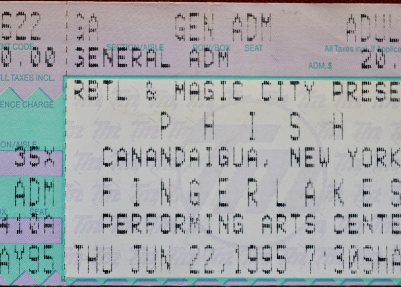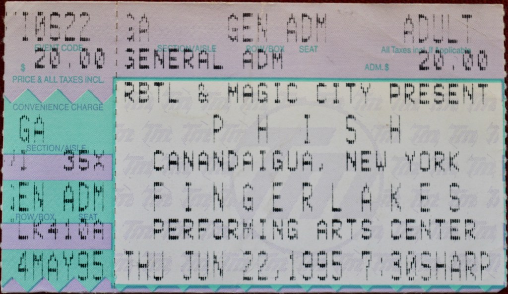On June 22nd, 1995 I rounded out a three-show run of Grateful Dead concerts south of the border with my second-ever Phish concert, which took place at a lovely little amphitheatre in the Finger Lakes region of New York state with the very obvious and quite pleasant name: Finger Lakes Performing Arts Centre. It’s now called Constellation Brands – Marvin Sands Performing Arts Centre which is clearly a much catchier name. It’s staggering to think of how much thought went into the new name.