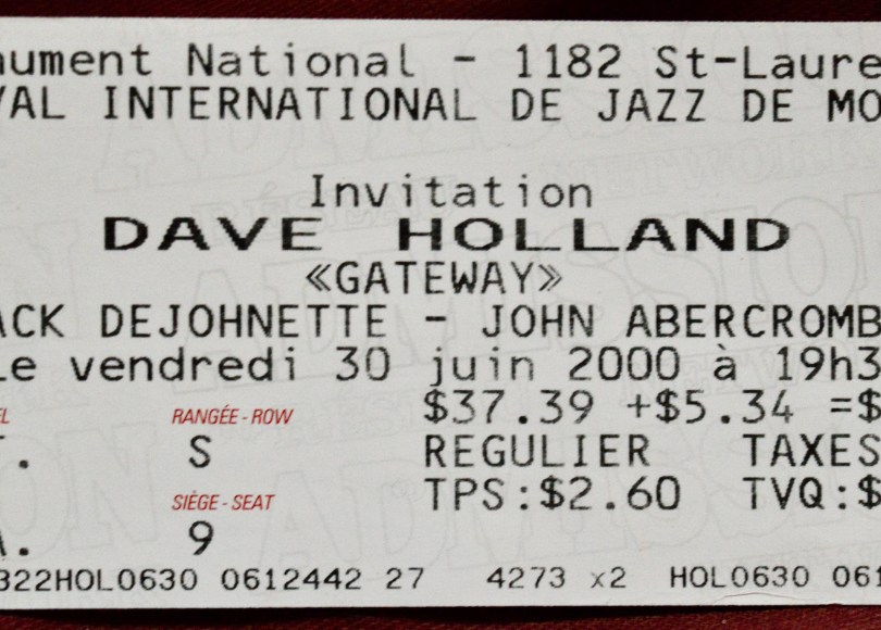 Not long before this concert Wayne had booked the Dave Holland Quintet into one of the theatres at our university and (of course) struck up a friendship. If I recall correctly I was even asked to accompany the two of them to dinner before that show but I couldn’t make it for one reason or another. Anyway, Dave Holland was playing at the Montréal jazz festival with John Abercrombie (1944-2017) on guitar and Holland’s bandmate from his Miles Davis days, Jack DeJohnette on drums.