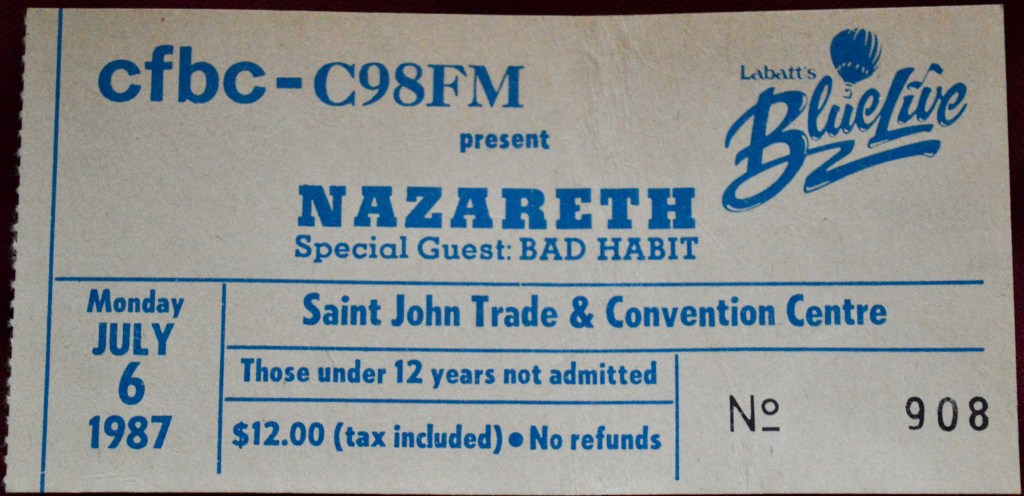 I don’t know how I got wind of the fact that Nazareth was booked to play in Saint John but however I heard about it I know it was last-minute, show day if I’m not mistaken. I was working at my mom and dad’s muffler warehouse for the summer and we were in the middle of moving from one warehouse to another. This herculean task was happening right in the middle of our busy season and there was no way my dad was giving me a day off to go see a concert.