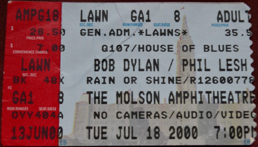 What a day July 18th, 2000 was! Phil Lesh and his rotating entourage of Dead-playing musicians were performing in Toronto at the Molson Amphitheatre with the great Bob Dylan. Of course I drove down for it, as did pretty much everyone I knew in Ottawa at the time.