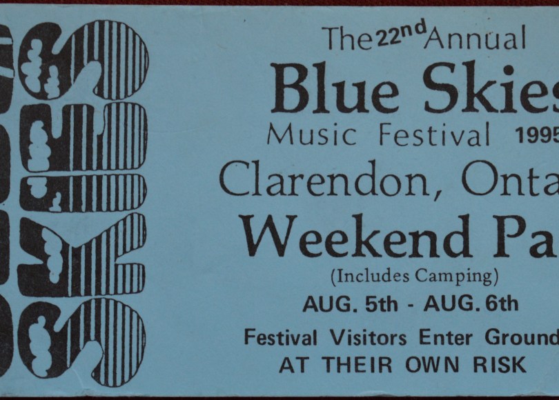 I have a hard time believing that it took until 1995 before I attended my first Blue Skies Festival but I dug through my ticket books and all the evidence supports it. I actually started thinking that this might have been my first camping festival but no, turned out that was Woodstock ’94. Regardless, I showed up for my first Blue Skies on August 5th of that year, and I was almost ready for it too.