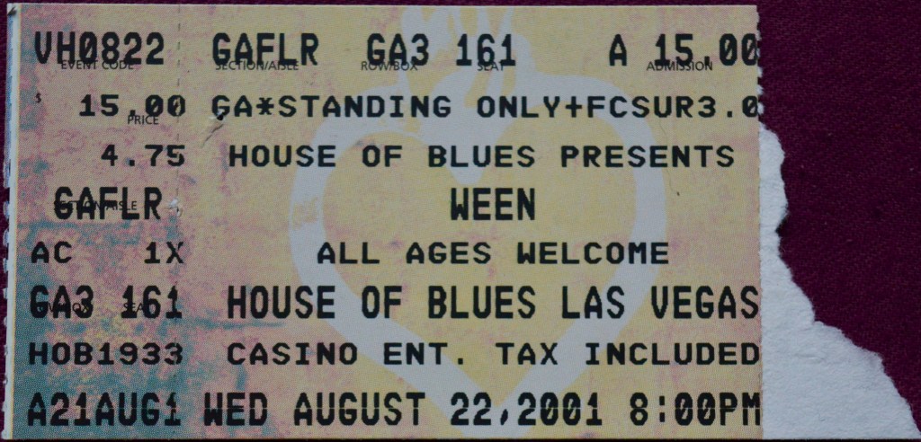 Now where was the House of Blues? In Mandalay Bay maybe? Wherever it was, I’m pretty sure I took the free tram that runs behind the casinos to get there. While I may be fuzzy on the logistics, once the Ween concert begins my memory kicks in with a picture-perfect run through of the show, with vivid recollections of the venue, my spot in the back right corner of the floor, and even the people I met, including two girls I had hung out with at the Scottsdale show (Sara and Katie) and a dude standing next to me who helped make the encore so great I bought him a beer. I tell you, that Mutilated Lips stands as one of the best live songs I have ever experienced. I thought it was the song itself (this had been my first time hearing Ween play it live) but nope. After seeing the band play it several more times I can report with confidence that this particular performance of Mutilated Lips was something special.