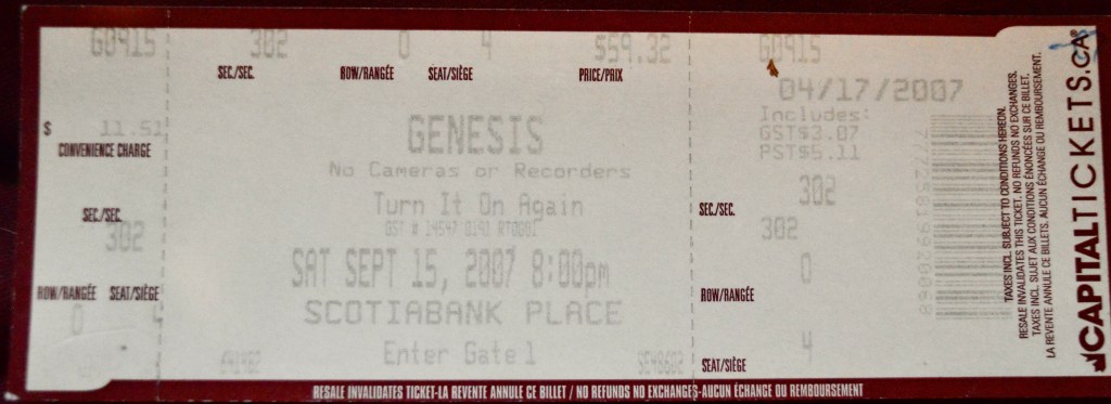 All that said, being on the “never seen ‘em” list is generally enough to get me out of the house on a Saturday night, and Genesis fit the bill. So on September 15th, 2007 I drove 25 kilometres west of Ottawa to Kanata for a concert in my local arena (and paid $15 to park in what is essentially a paved farmer’s field).