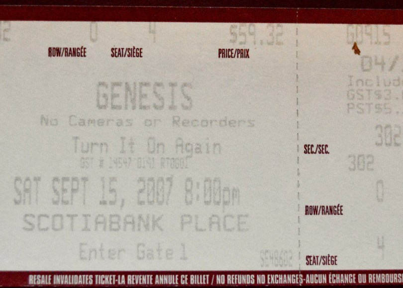 All that said, being on the “never seen ‘em” list is generally enough to get me out of the house on a Saturday night, and Genesis fit the bill. So on September 15th, 2007 I drove 25 kilometres west of Ottawa to Kanata for a concert in my local arena (and paid $15 to park in what is essentially a paved farmer’s field).