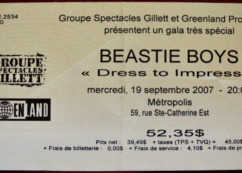 And so I was super-excited for the somewhat unique chance to see the band in a cool venue like Metropolis. The Beasties were doing a tour that had them playing both an arena and a theatre/club in each city. The Montreal stop had them booked into the Bell Centre but the night before – on September 19th, 2007 – they played in that wonderful ancient venue on rue Ste. Catherine in front of a capacity crowd of 2,350, yours truly included.