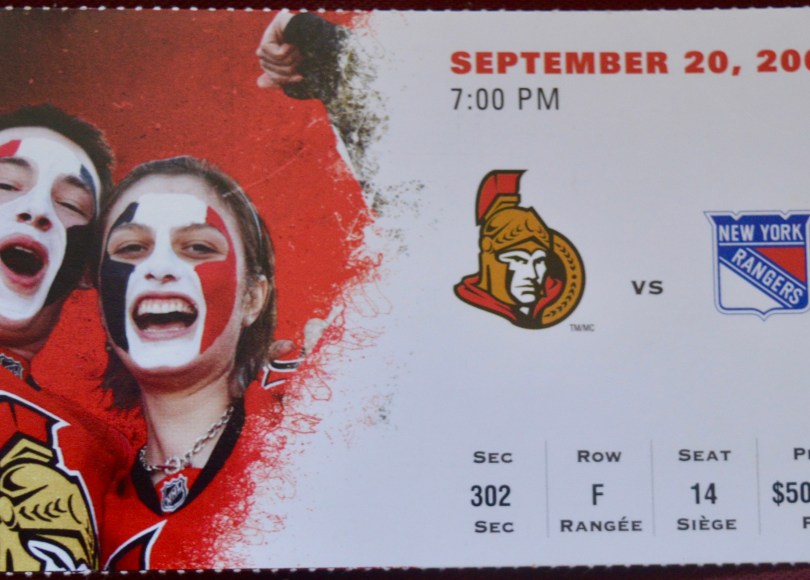 For some reason I had a no-socializing rule when it came to students, and it was a policy I almost entirely adhered to. One of the few exceptions was when I accepted an offer to accompany a student (Fender Strat, really into a PEI band called Two Hours Traffic) to a game between the Ottawa Senators and the New York Rangers on September 20th, 2008.