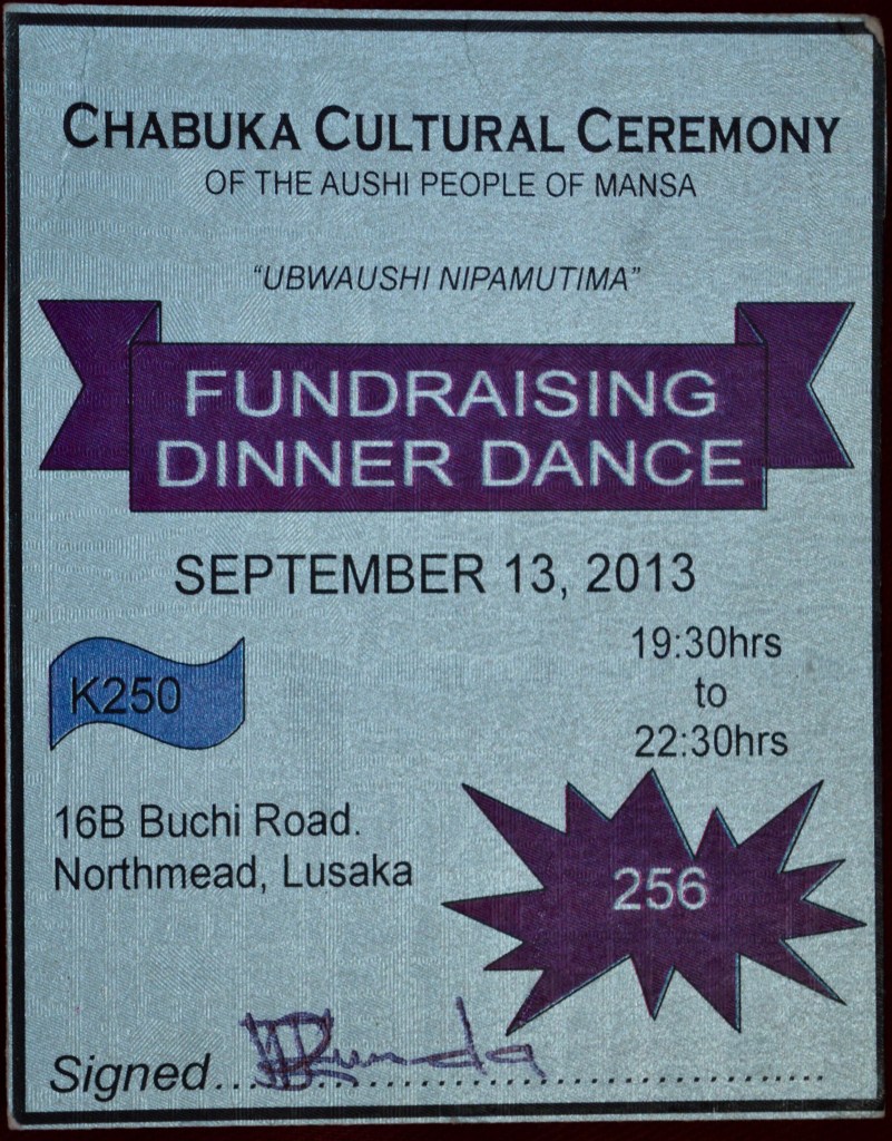 I almost didn’t go; I certainly didn’t want to shell out five hundred kwacha (nearly $100CDN), but one of the first government officials we had met in the country – I believe she was the director of Zambia’s Arts & Culture society or something similar – had suggested we attend this fundraiser for the local tribal chiefs, invited us even, and I felt like I would be letting her down if we didn’t go.