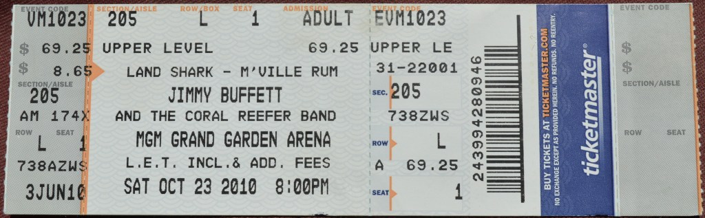 On October 23rd, 2010 I had a ticket to see Jimmy Buffett and his Coral Reefers at MGM Grand, but the party got started on the otherwise ugly service road next to where I was staying at The Flaming O, a strip that eventually got developed into a cool pedestrian mall with restaurants, casinos, and funky shops but again, at the time it was a gritty concrete side road off The Strip that would ordinarily be ignored as the crowd passed by one casino after another.