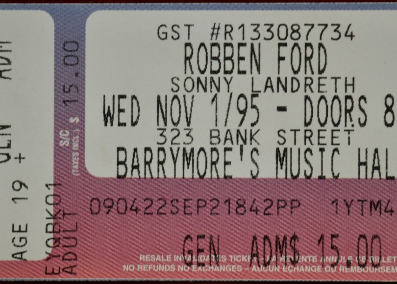 On November 1st, 1995 I went to the wonderfully nostalgic old rundown Ottawa mainstay Barrymore’s Music Hall to see a performance by Robben Ford, with Sonny Landreth opening the show.