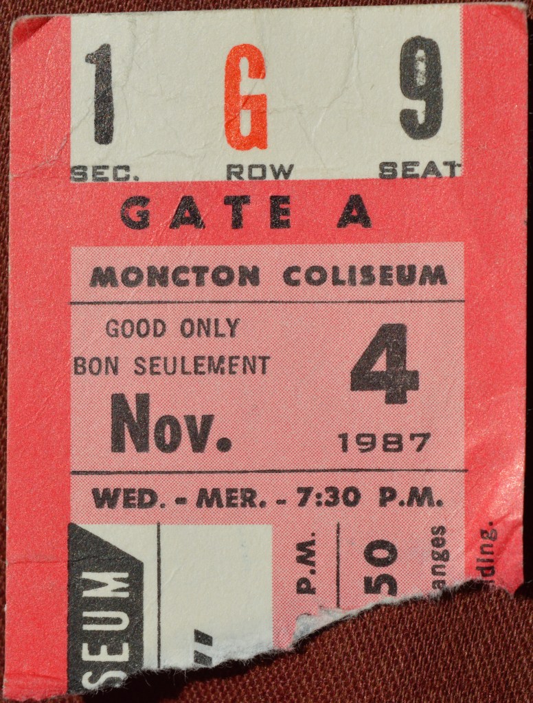 On November 4th, 1987 Rush played the Moncton Coliseum with Chalk Circle opening the show. I was beyond excited. So beyond, in fact, that my friend and I used stationary and a business card from his mom’s defunct indie record label to forge a couple of bogus backstage passes for the show. It was literally a cut-and-paste job with scotch tape holding the laminate together, and they locked pretty shoddy (what a young punk forger I was).