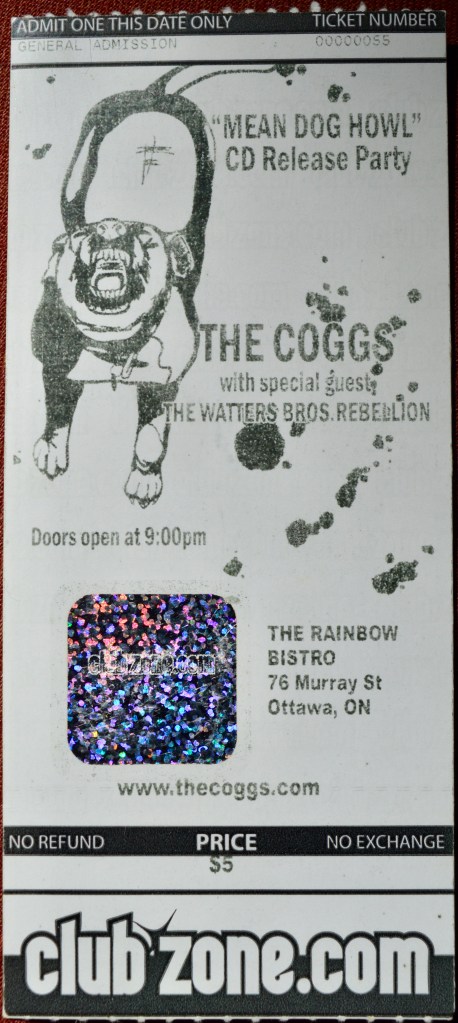 I have no recollection whatsoever of being at this show; I can’t remember ever hearing of a band called The Coggs before or since and as I’ve been to The Rainbow many, many times I can’t squeeze any of my memories from there (shooting pool upstairs, bellying up to the big curved bar downstairs, rocking out on the crowded dancefloor) to this show. It simply no longer exists in my mind, and if not for the ticket stub in my book I would forever deny being at this show, maybe even under hypnosis.