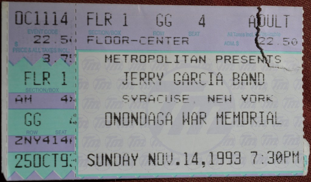 On November 14th, 1993 I saw my second and final concert by the Jerry Garcia Band. Tragically this sort of magic ended when Jerome John Garcia left our living planet on August 9th, 1995 and though I would be fortunate enough to have three more dates with Jerry in my future courtesy of the Grateful Dead’s 1995 summer tour, a friend of mine who thinks he’s usually right about such things once told me that a Jerry show was worth three Dead shows and I’m inclined to not disagree.