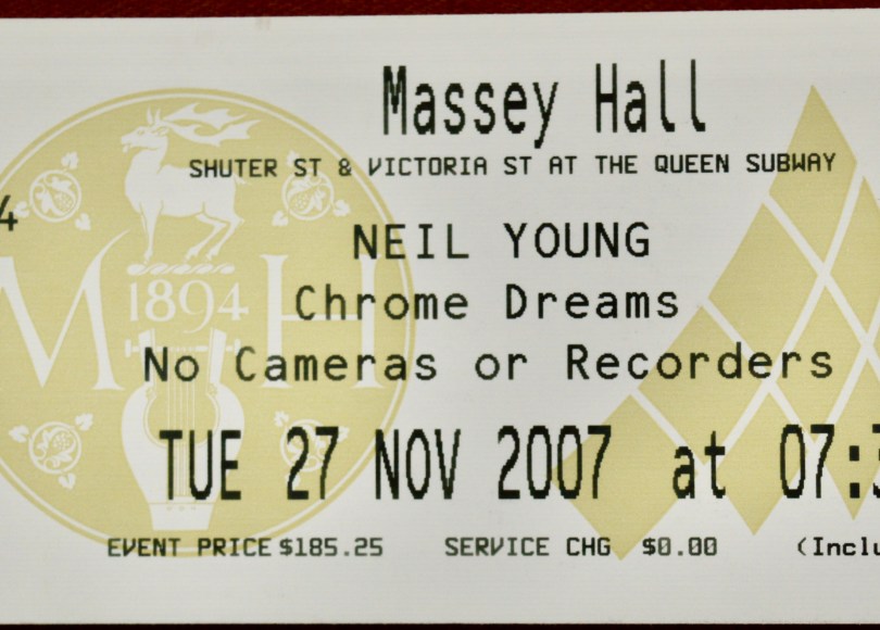All of this is a heck of a lot of preamble simply to bring us to November 27th, 2007, when I sat in Massey Hall for the second of a three-night run of Neil Young concerts. When he started of with From Hank to Hendrix it was immediately clear that he was going to repeat the same setlist every night, and with very minor (but beautiful) alterations that’s what he did. I remember sitting there being disappointed that such pricey tickets were going to yield the same results for three nights running but I was soon lulled into being thrilled instead. Neil Young is so present-in-the-moment, he is so bloody Zen that he just can’t play the same song twice, any more than you can step into the same river twice. He plays with such conviction, such emotion that it’s like everyone in the room is hearing the song for the first time, Neil included.