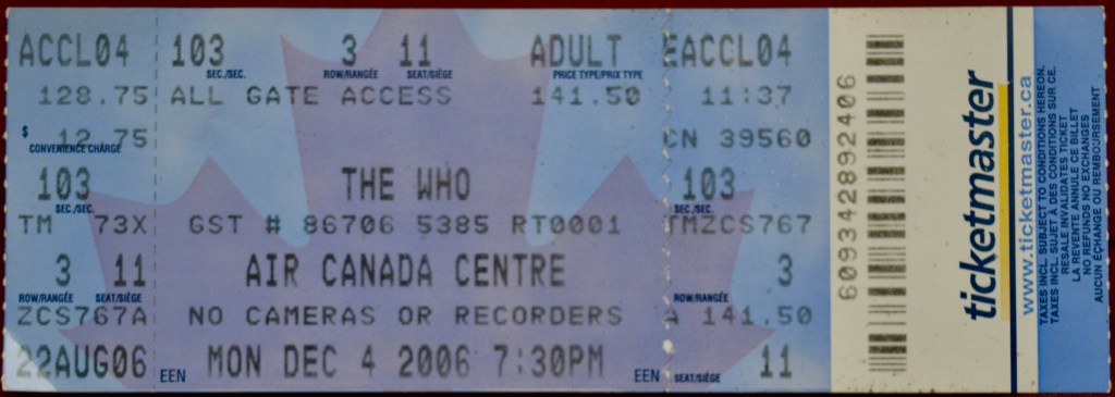 Ah, but this story is supposed to be about the one and only time I saw The Who – just steps away from our surprisingly luxurious room – at the Air Canada Centre.