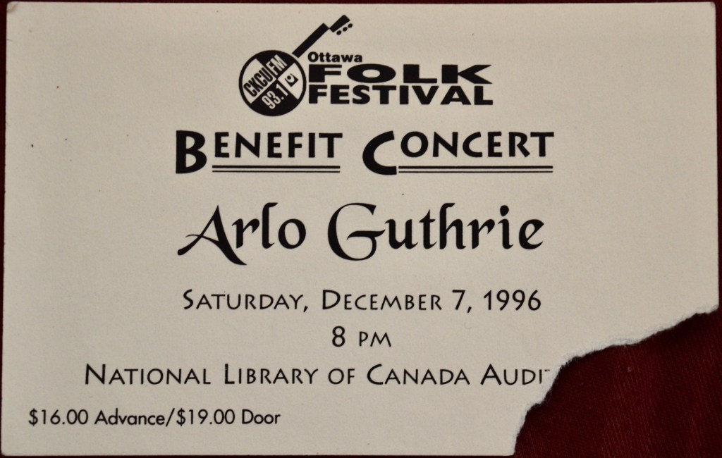 The show was in the basement “theatre” of the National Library and Archives building, nestled among Ottawa’s more well-known structures like the Parliament Buildings and the Supreme Court.  It was a medium-sized room with dentist-office ceiling tiles and about eighty folding chairs facing an imaginary stage; a lower-tiered venue if ever there was one.  Why someone of Guthrie’s notability was playing such a place was beyond me at the time, but seems less so now.  I think I was sitting in the front row, or very close to it.