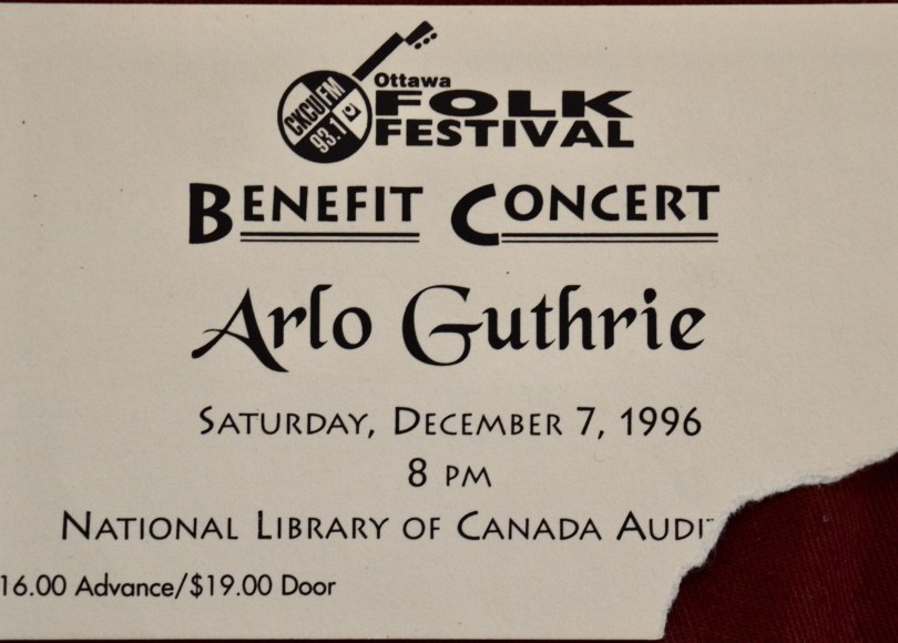 The show was in the basement “theatre” of the National Library and Archives building, nestled among Ottawa’s more well-known structures like the Parliament Buildings and the Supreme Court.  It was a medium-sized room with dentist-office ceiling tiles and about eighty folding chairs facing an imaginary stage; a lower-tiered venue if ever there was one.  Why someone of Guthrie’s notability was playing such a place was beyond me at the time, but seems less so now.  I think I was sitting in the front row, or very close to it.