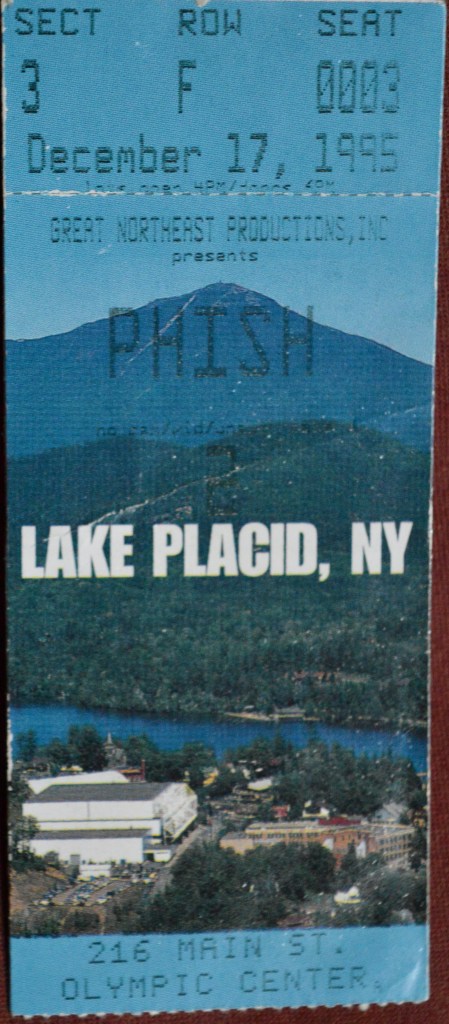 I remember this show very, very clearly. My friend JP had come to Lake Placid for the second night (to date his only Phish concert) and he bought a ticket from someone at face value (maybe around $20?) at a pre-party in the hotel. Imagine his disappointment when we found free tickets literally on the ground as we walked to the show. I remember a tree near the front door of the venue that had dozens of unused tickets for the evening’s performance dangling from it’s branches.