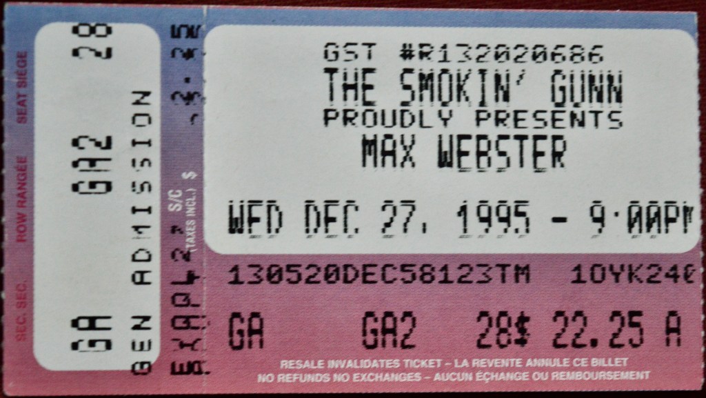 I can’t tell you how thrilled I am to type the following sentence: On December 27th, 1995 I saw Max Webster live in concert.