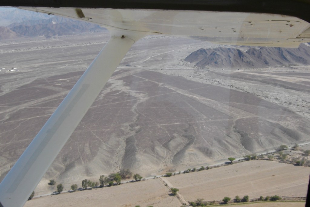 The animal pictographs were cool but I was particularly struck by the hundreds upon hundreds of straight lines. They are impossibly long and remarkably straight, and they run so extraordinarily willy-nilly that the alien conspiracy theorists can’t decide whether they are landing pads or star charts or a dozen other (im)possibilites. The lines don’t seem affected at all by the geography they encounter, as they run over hills and through valleys without altering whatsoever from their razor-sharp straightness. It was just a crazy thing to witness, especially with a pilot who eagerly zigged back and forth tipping his tiny aircraft this way and that so we wide-eyed and shutter-happy passengers could get the best views possible.